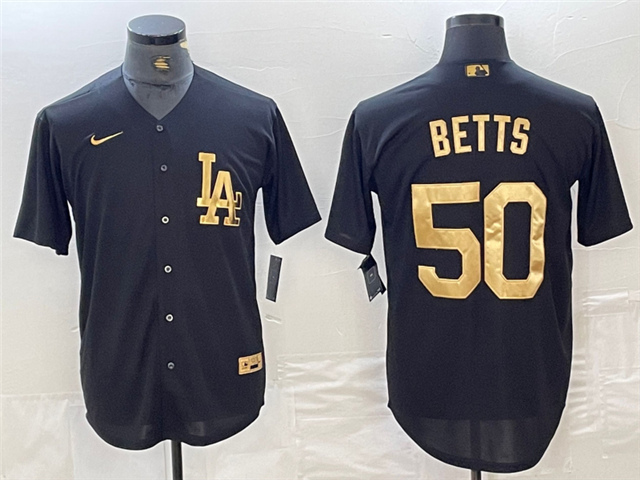 Los Angeles Dodgers #50 Mookie Betts Black Gold Jersey