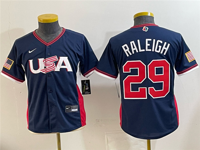 USA Baseball #29 Cal Raleigh Youth Navy 2026 World Baseball Classic Jersey