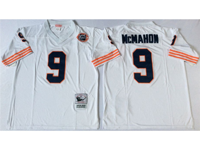 Chicago Bears #9 Jim McMahon Throwback White Jersey with Bear Patch