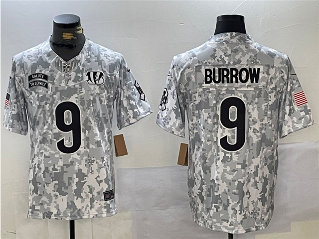 Cincinnati Bengals #9 Joe Burrow Arctic Camo 2024 Salute To Service Limited Jersey