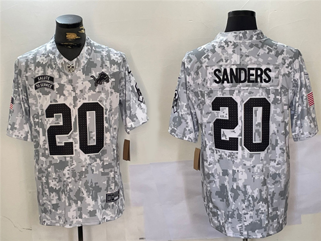 Detroit Lions #20 Barry Sanders Arctic Camo 2024 Salute To Service Limited Jersey