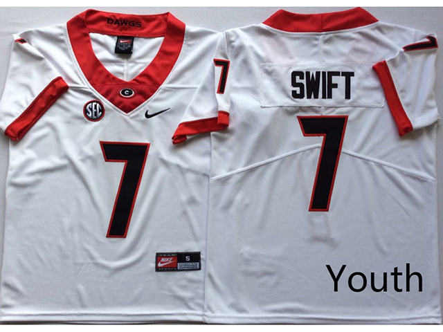 Georgia Bulldogs #7 D'Andre Swift Youth White College Football Jersey