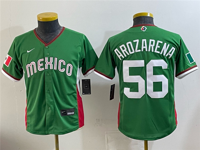 Mexico Baseball #56 Randy Arozarena Youth Green 2026 World Baseball Classic Jersey
