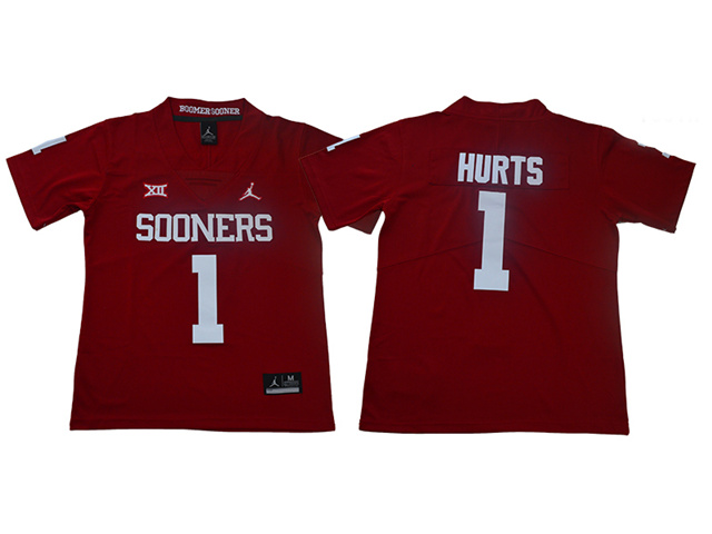 Oklahoma Sooners #1 Jalen Hurts Youth Red College Football Jersey